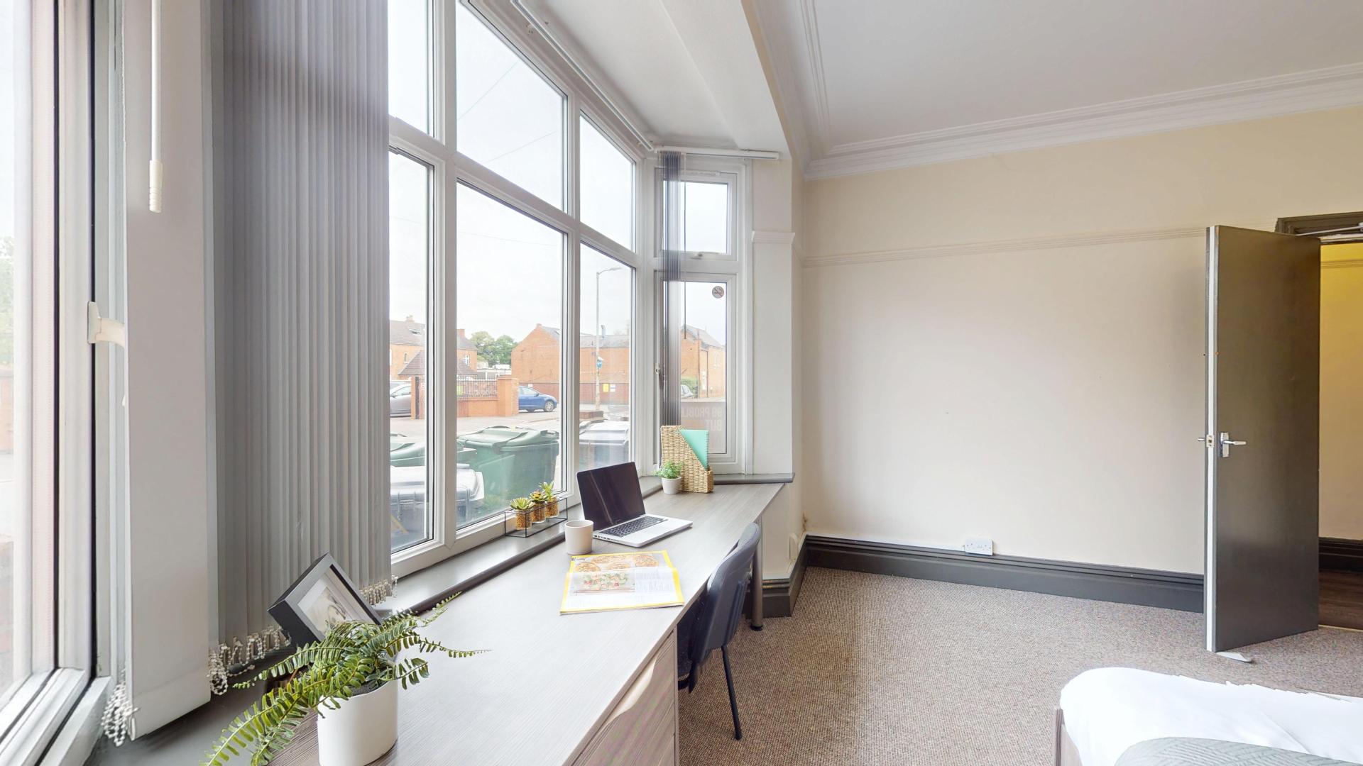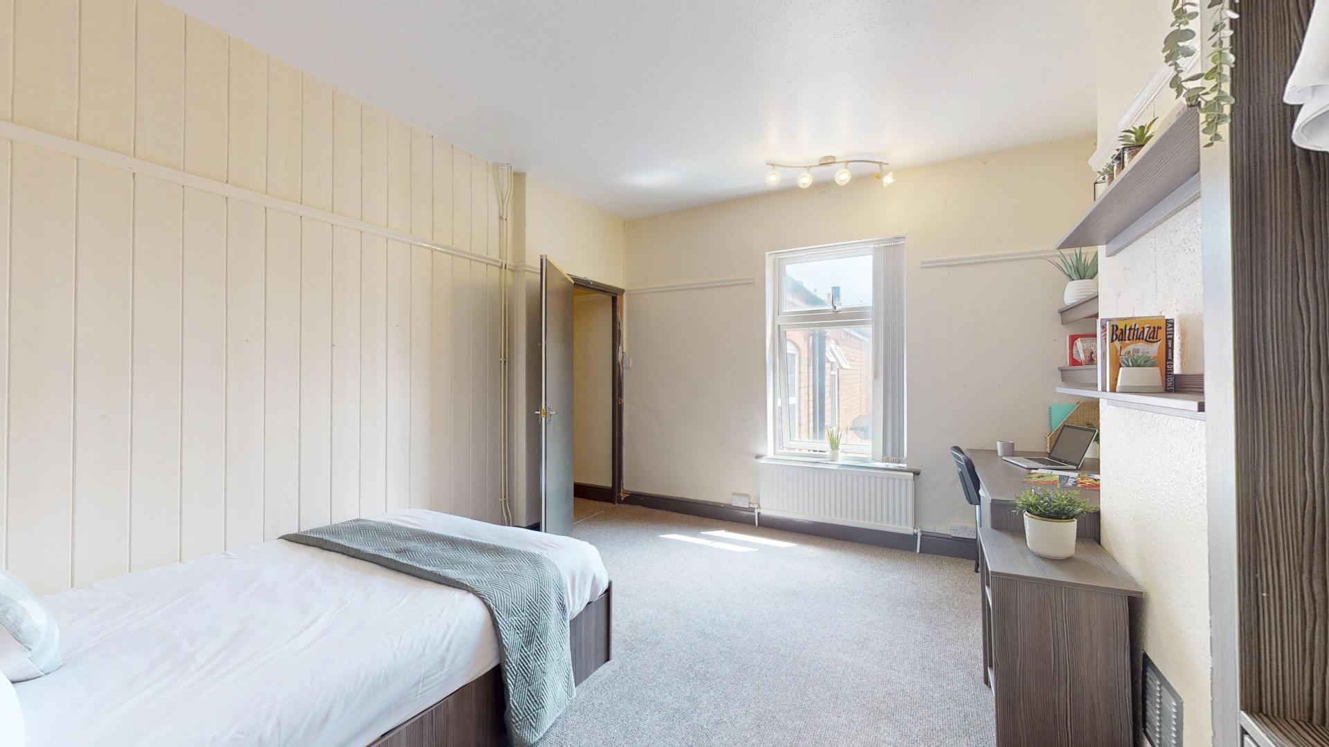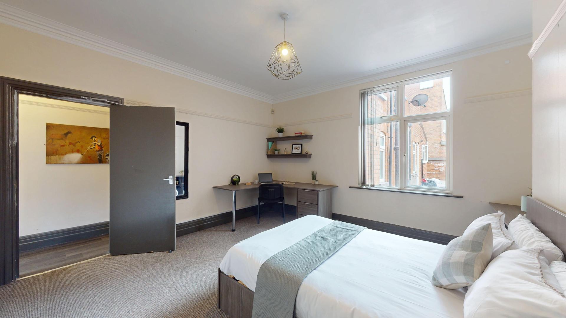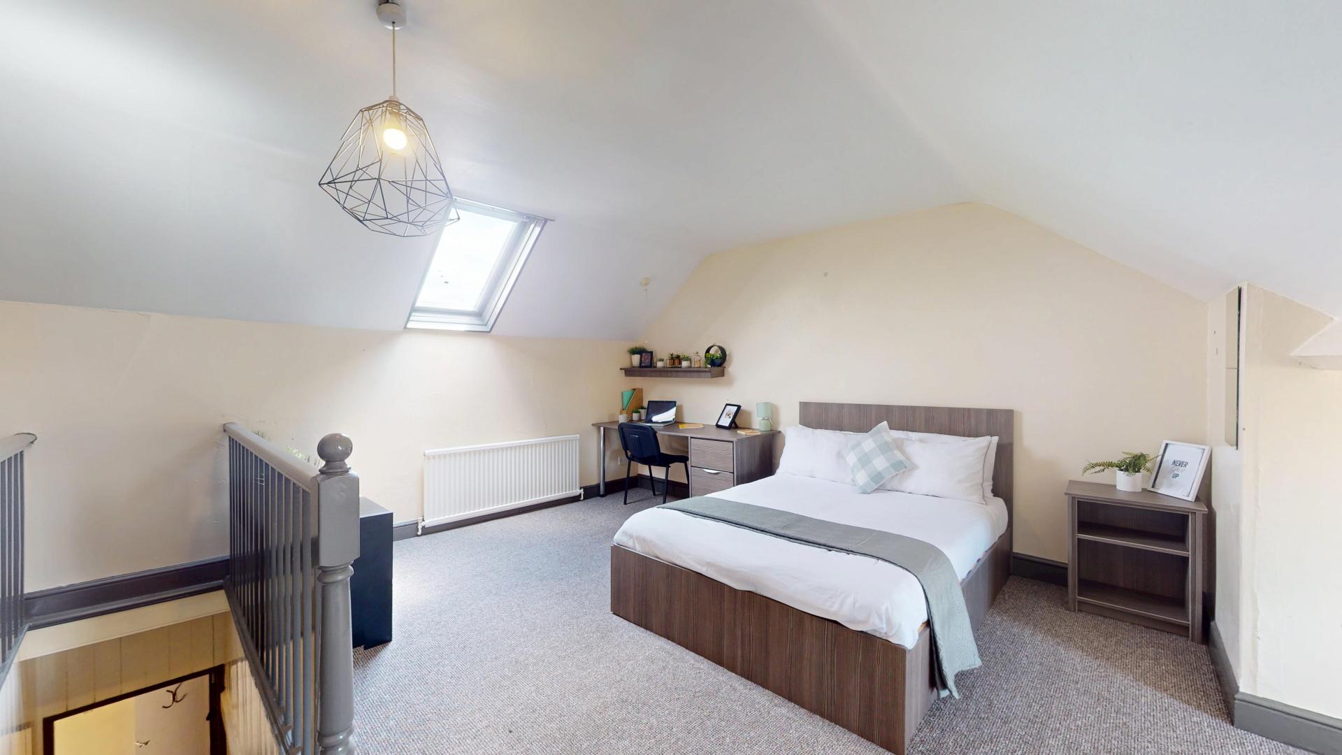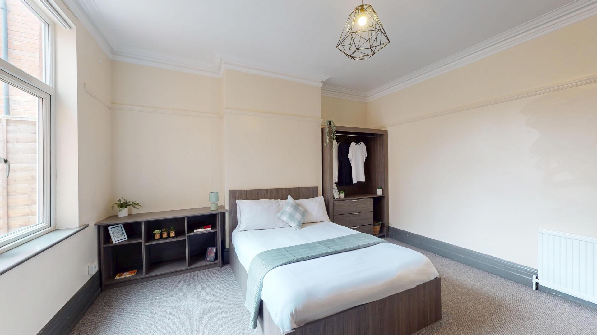 - Bedroom furniture: bed, desk, desk chair, wardrobe, and drawers