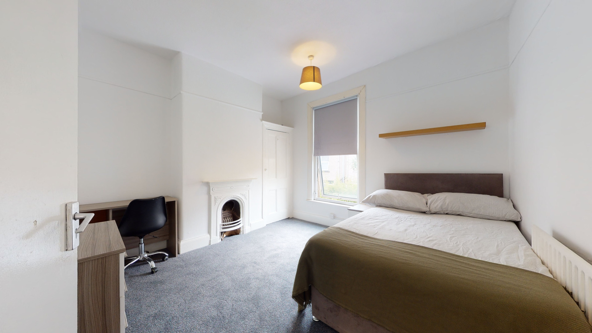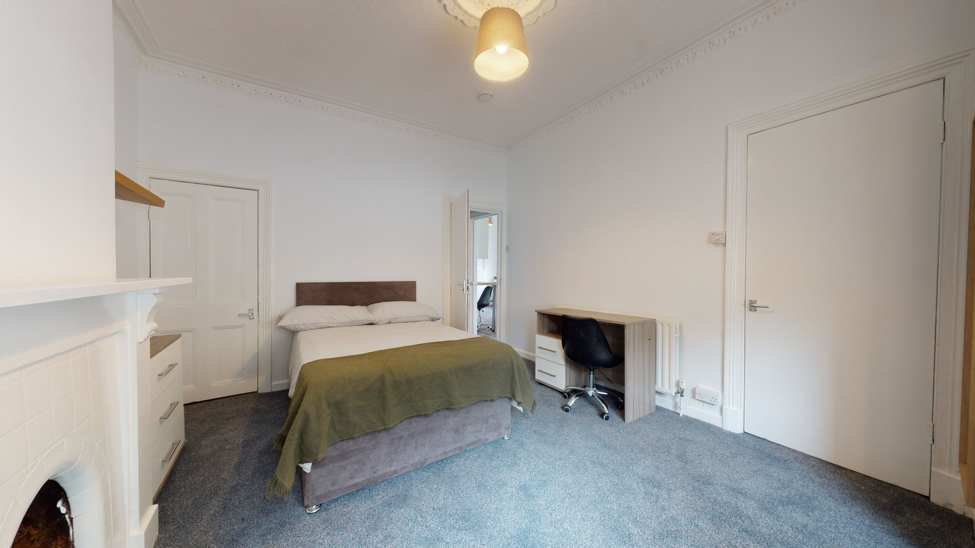 - Bedroom furniture: bed, desk, desk chair, wardrobe, and drawers