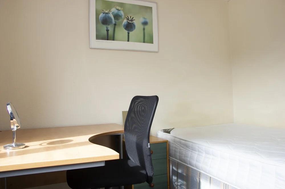 - Bedroom furniture: bed, desk, desk chair, wardrobe, and drawers