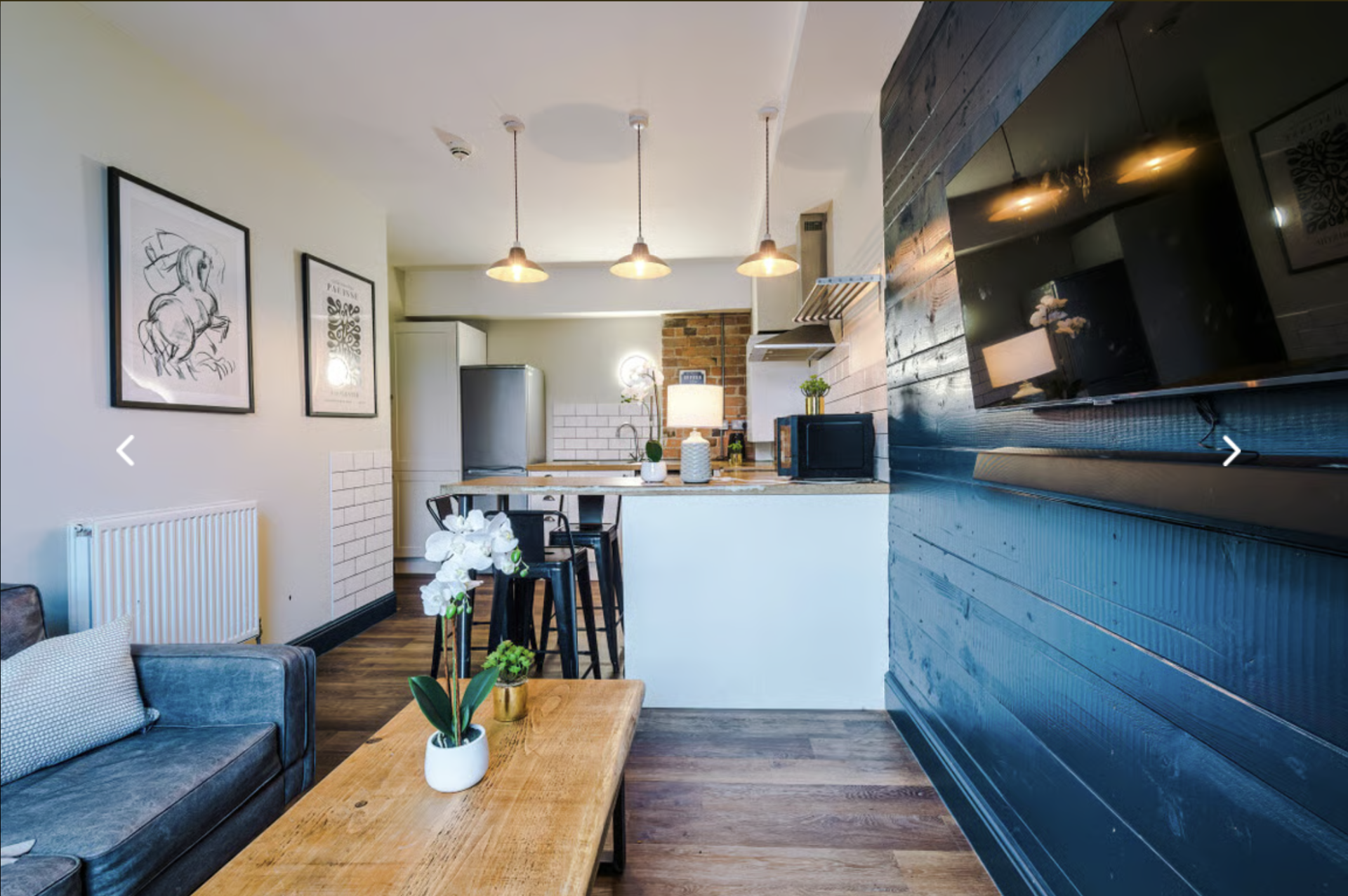 Recently refurbished and fully furnished, this flat is ready to move into and includes new furniture and kitchen appliances (as of summer 2022). The open-plan lounge features a large flat-screen TV with sound bar and comfortable seating, perfect for relaxing after lectures. The fitted kitchen comes with a washer-dryer and fridge-freezer, making everyday life convenient and stress-free.Each bedroom is designed for both study and relaxation, complete with a double bed, desk, chair, wardrobe and its own TV. With high-speed Wi-Fi and all utilities included in the rent, this flat offers everything you need for easy, enjoyable student living in Leicester city centre.