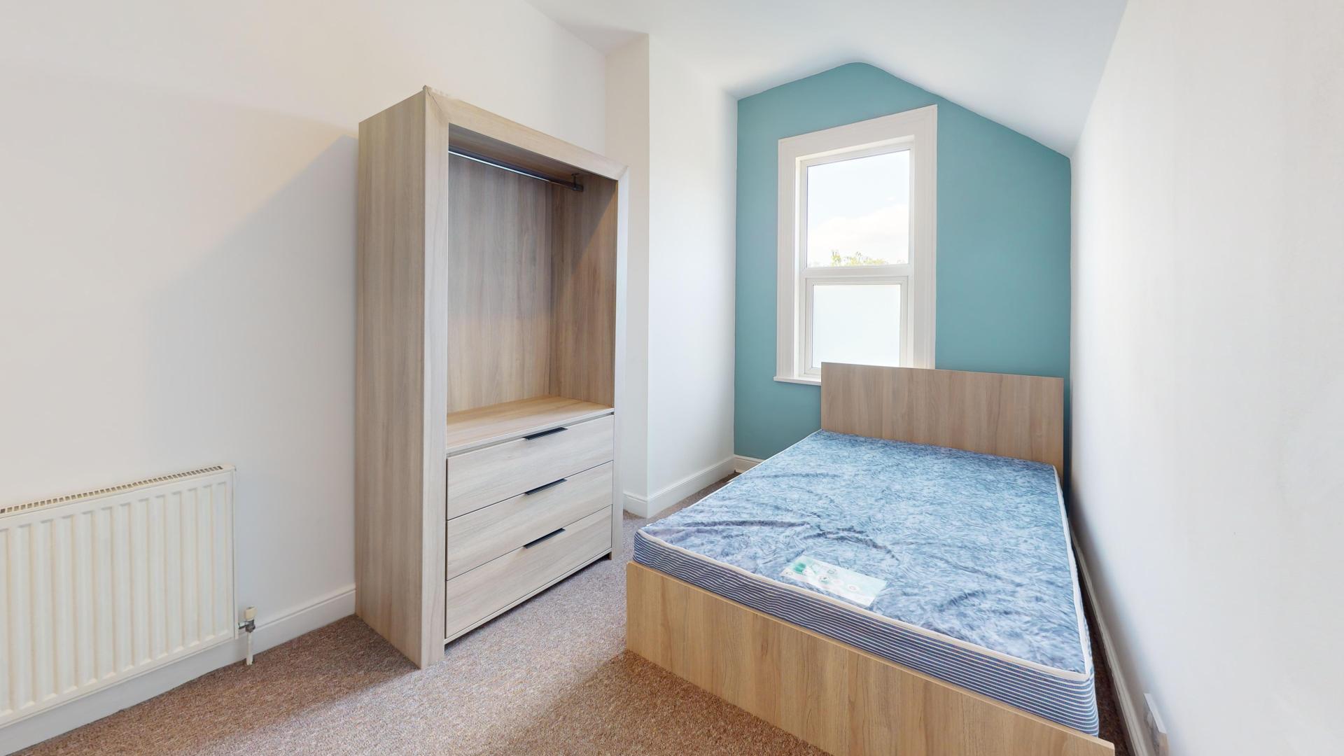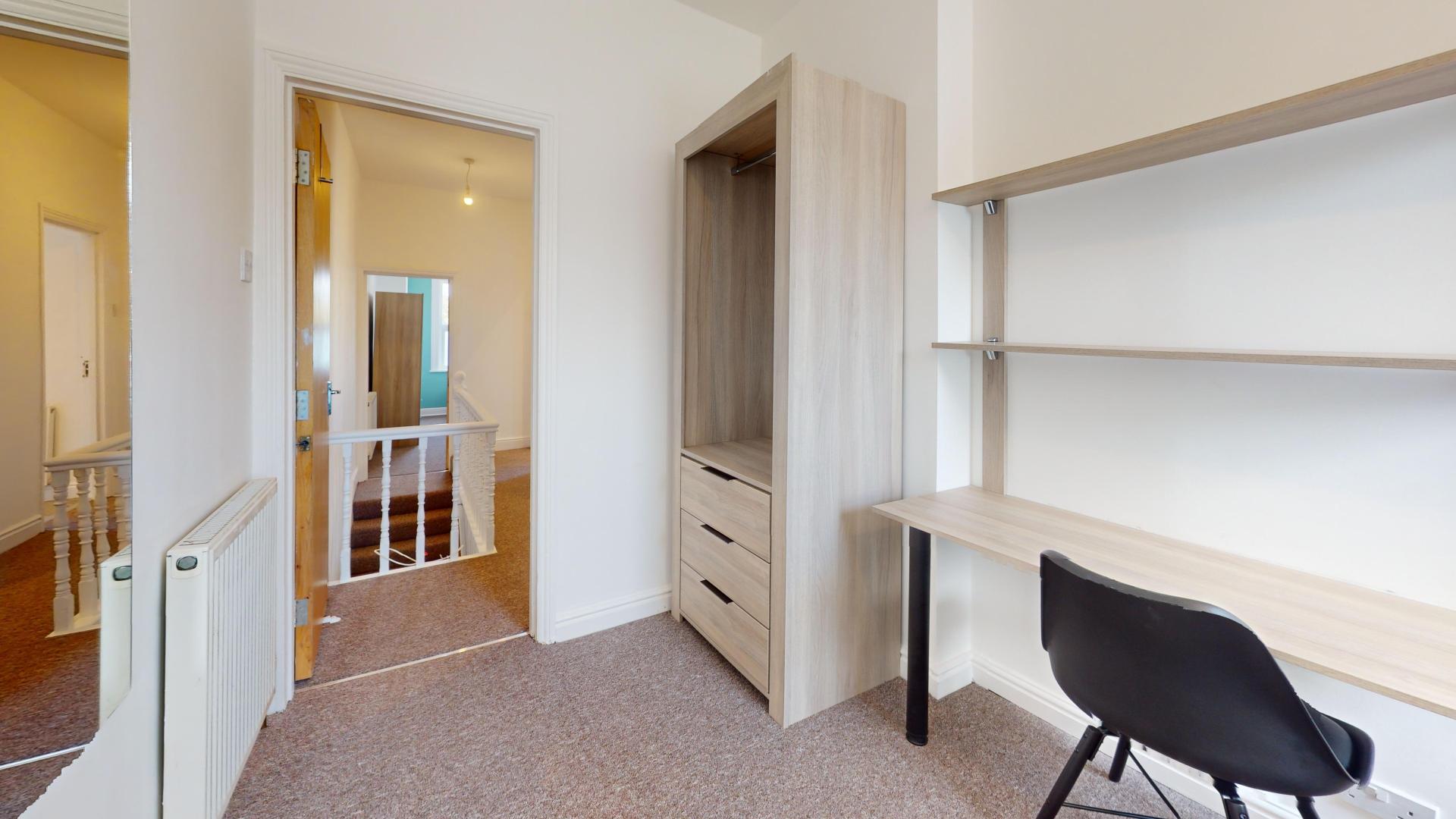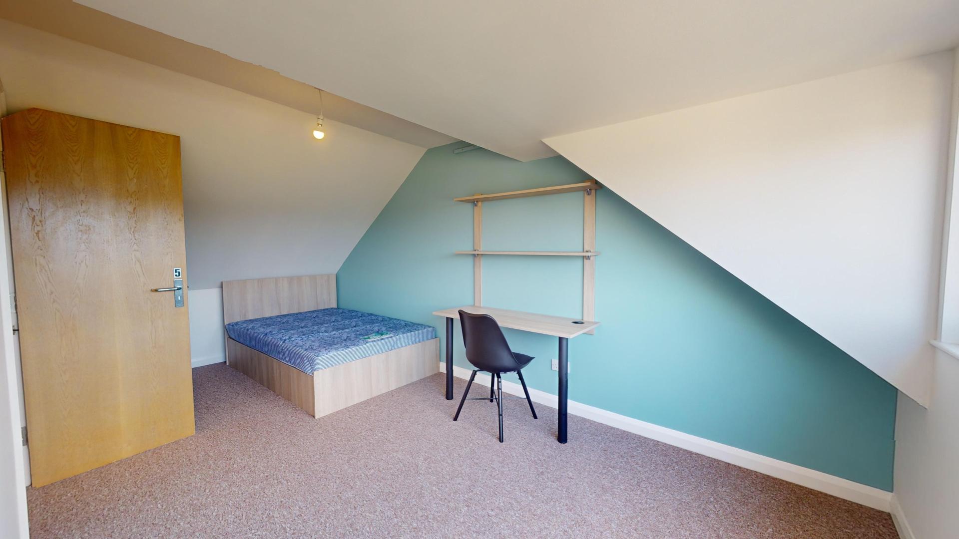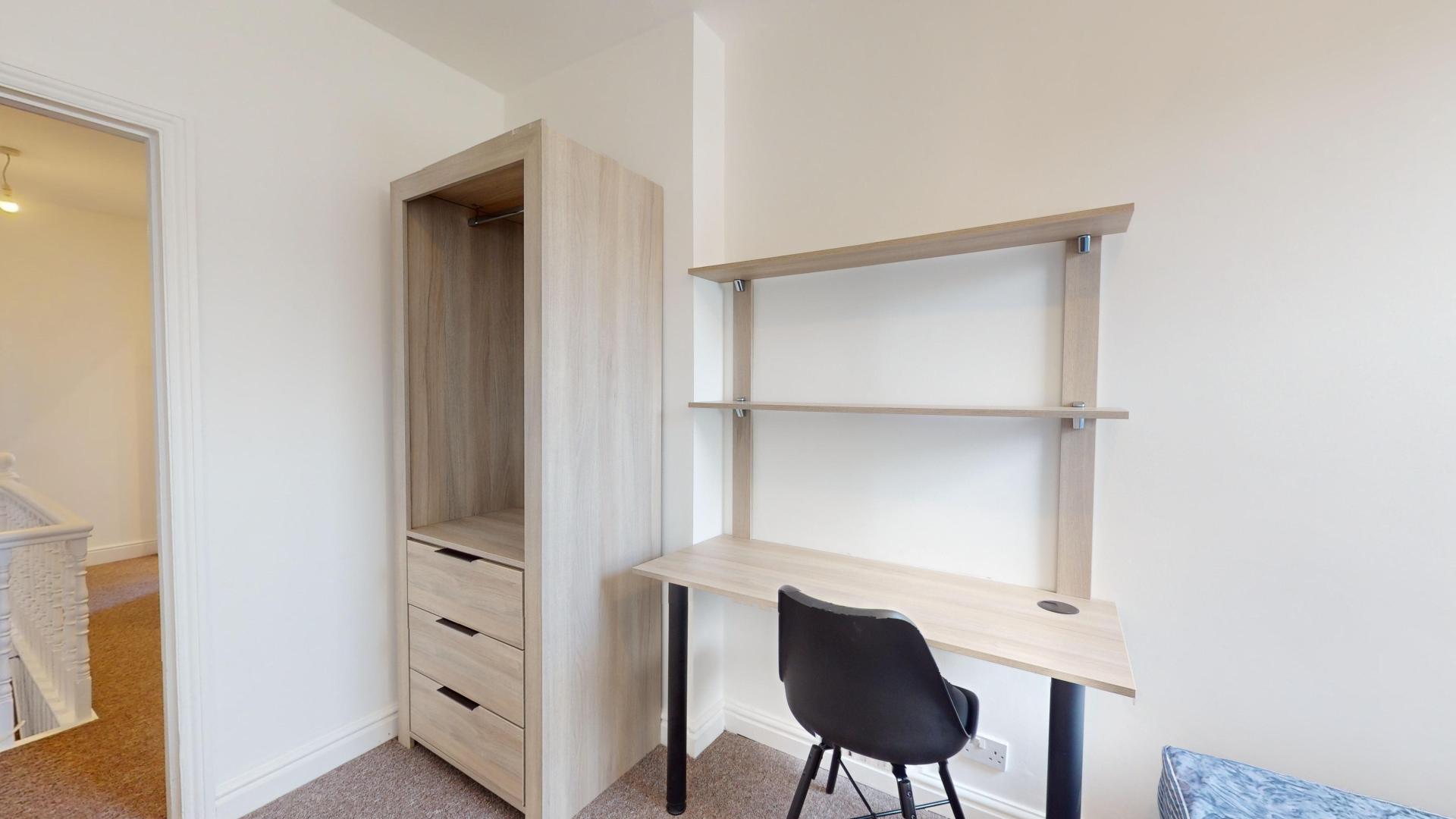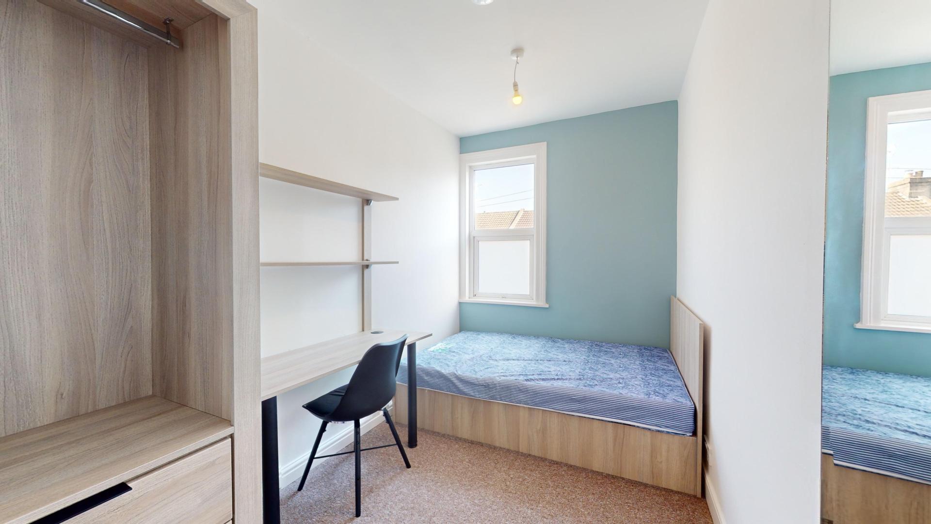 5 Double Bedrooms – Each room is generously sized and fully furnished with a comfy double bed, wardrobe, desk, and chair.