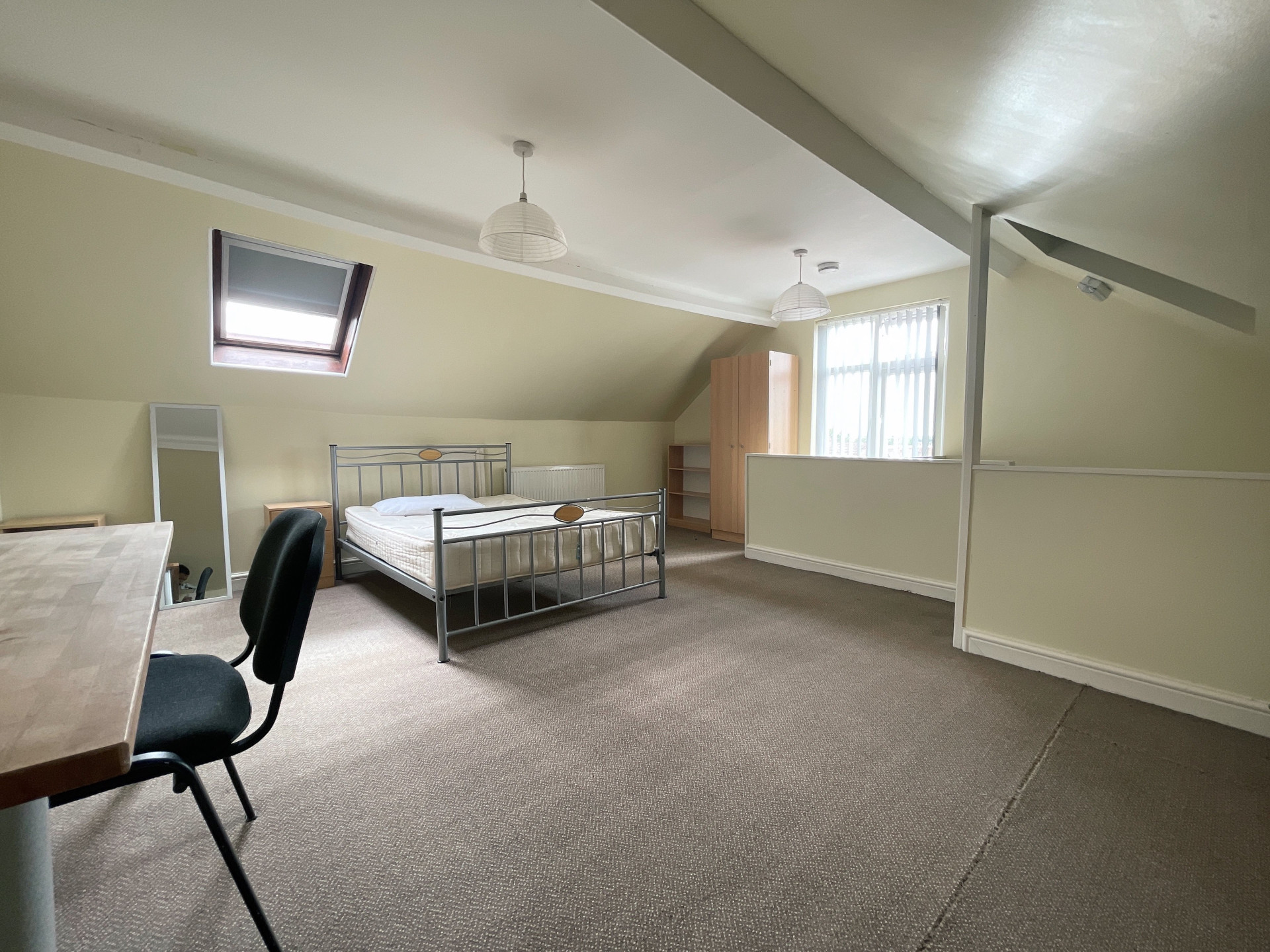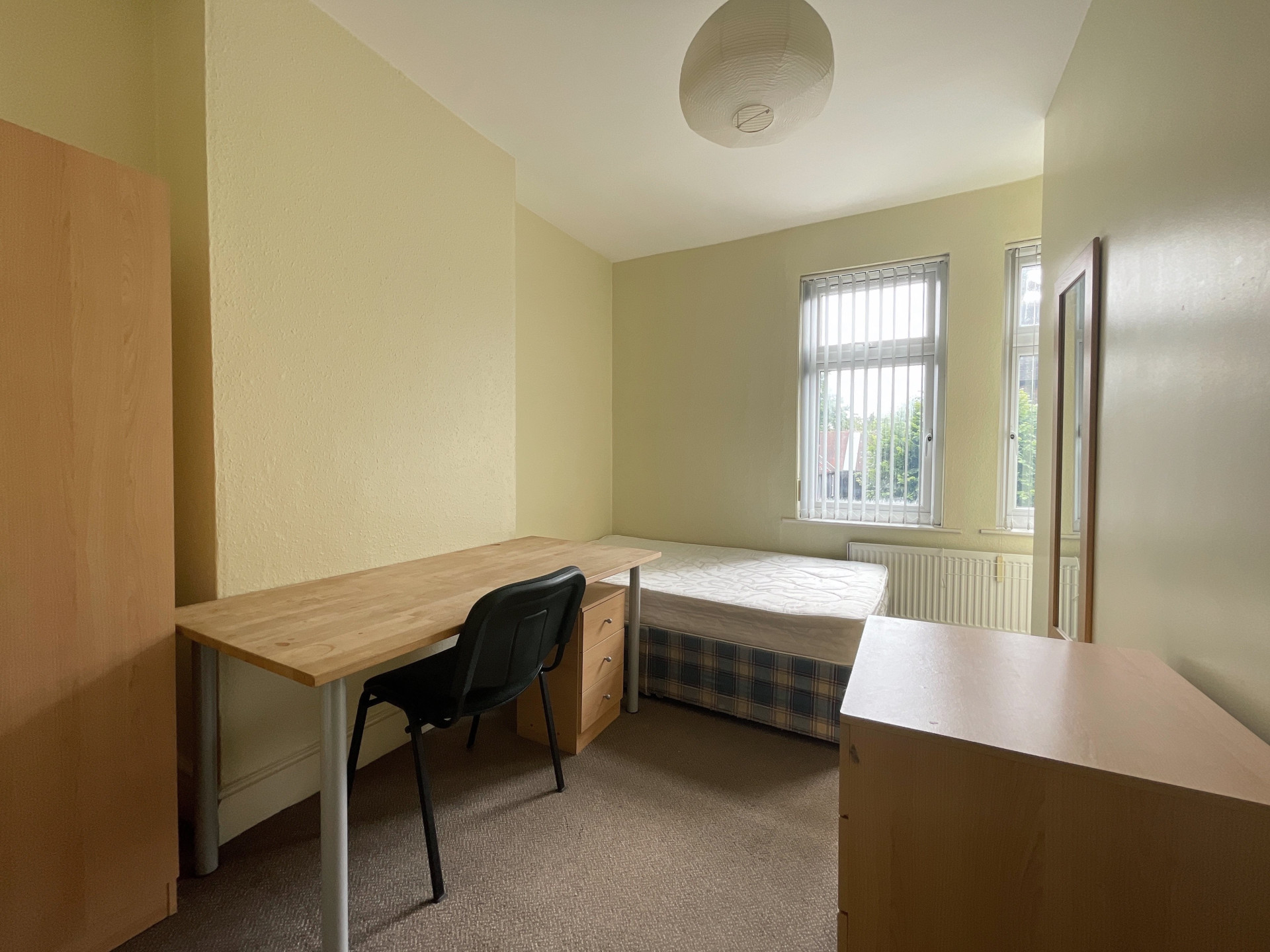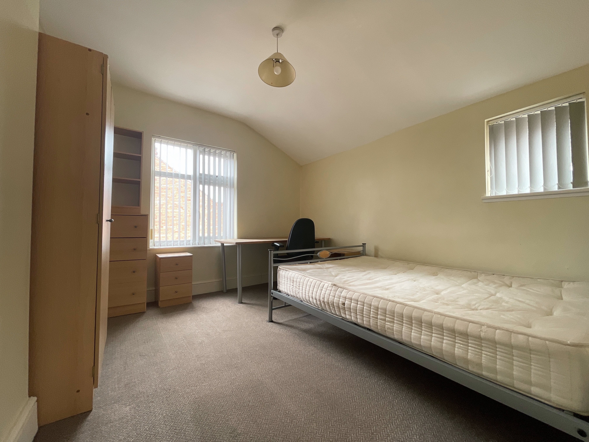 - Bedroom furniture: bed, desk, desk chair, wardrobe, and drawers
