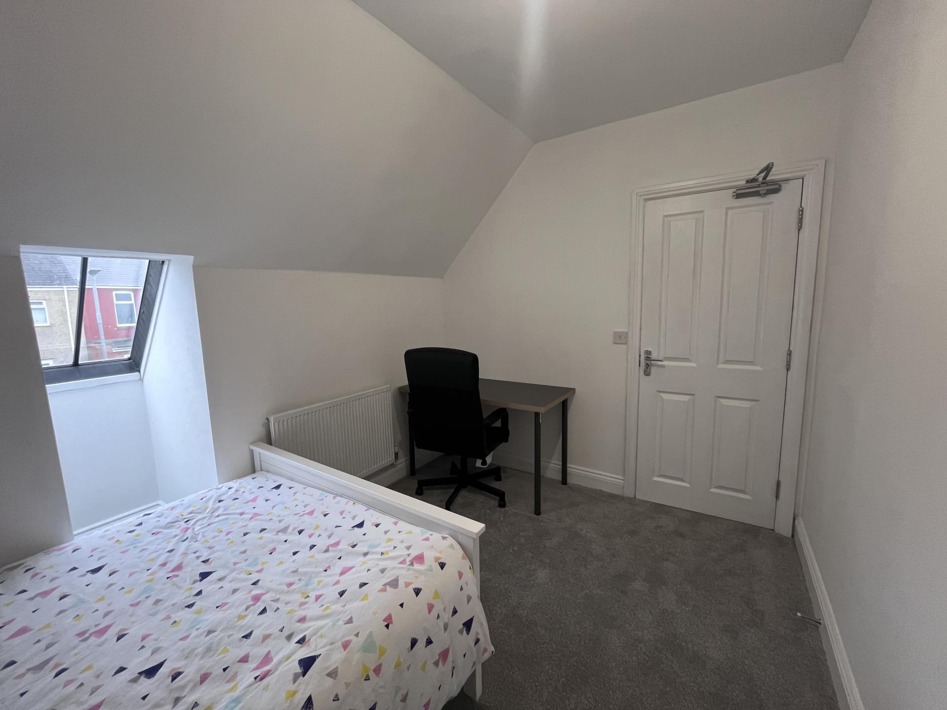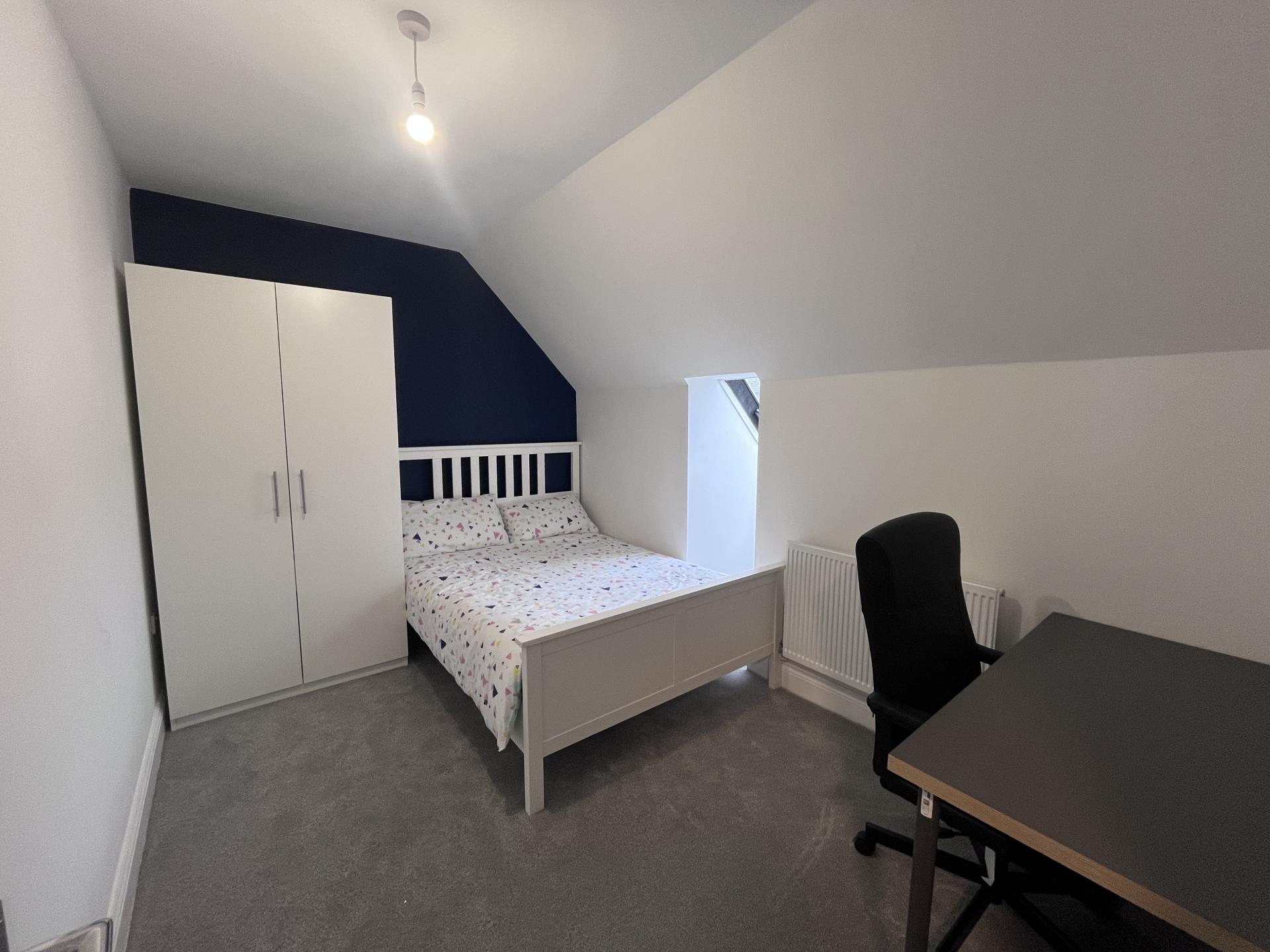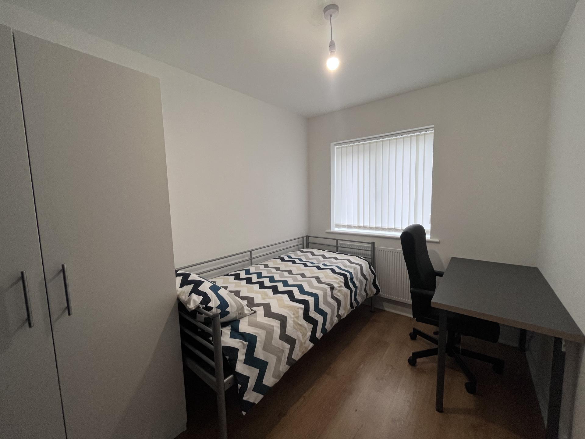 4 fully furnished bedrooms with bed desk chair wardrobe and storage