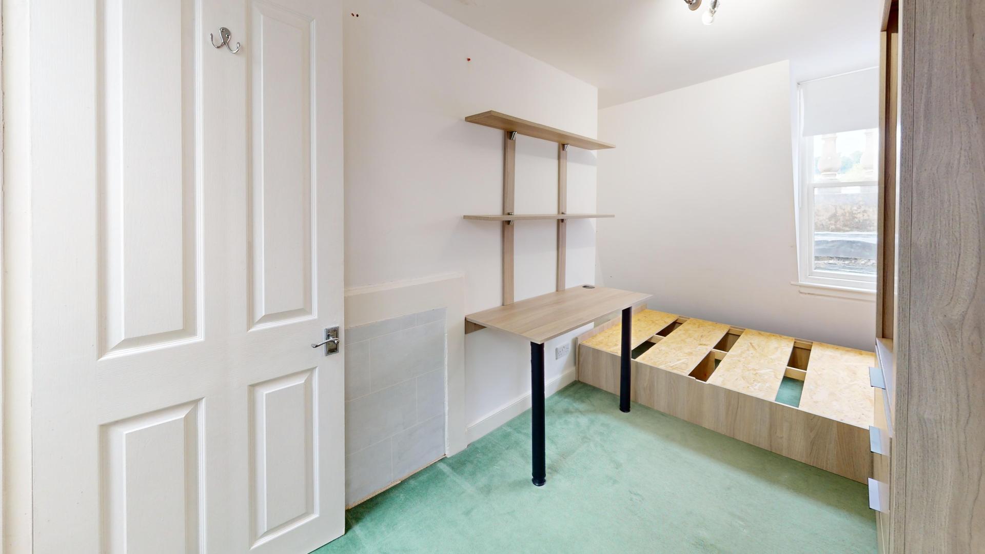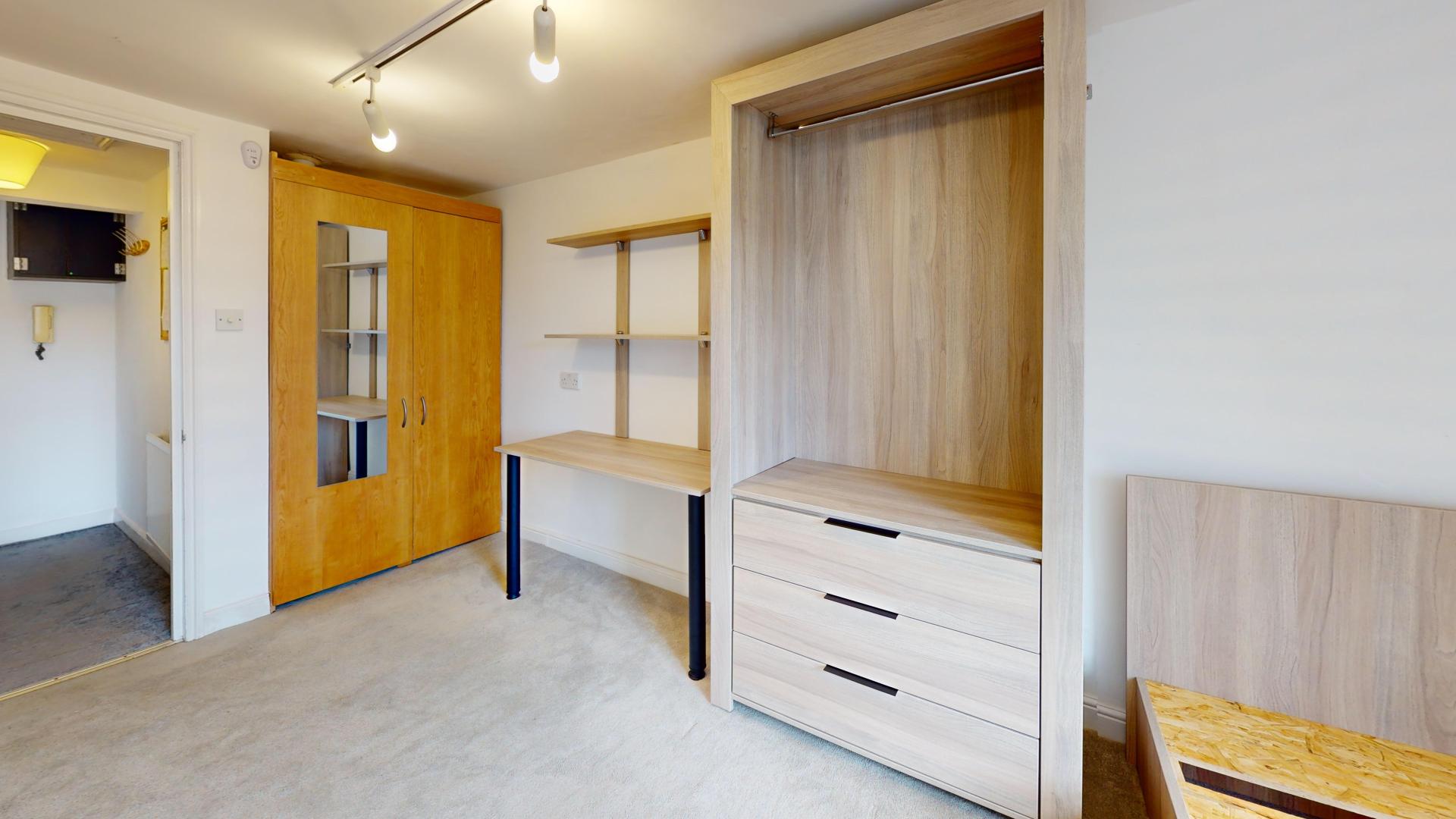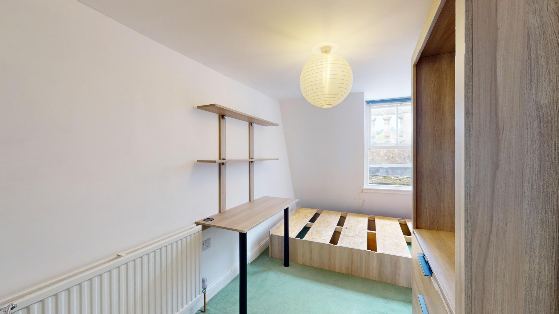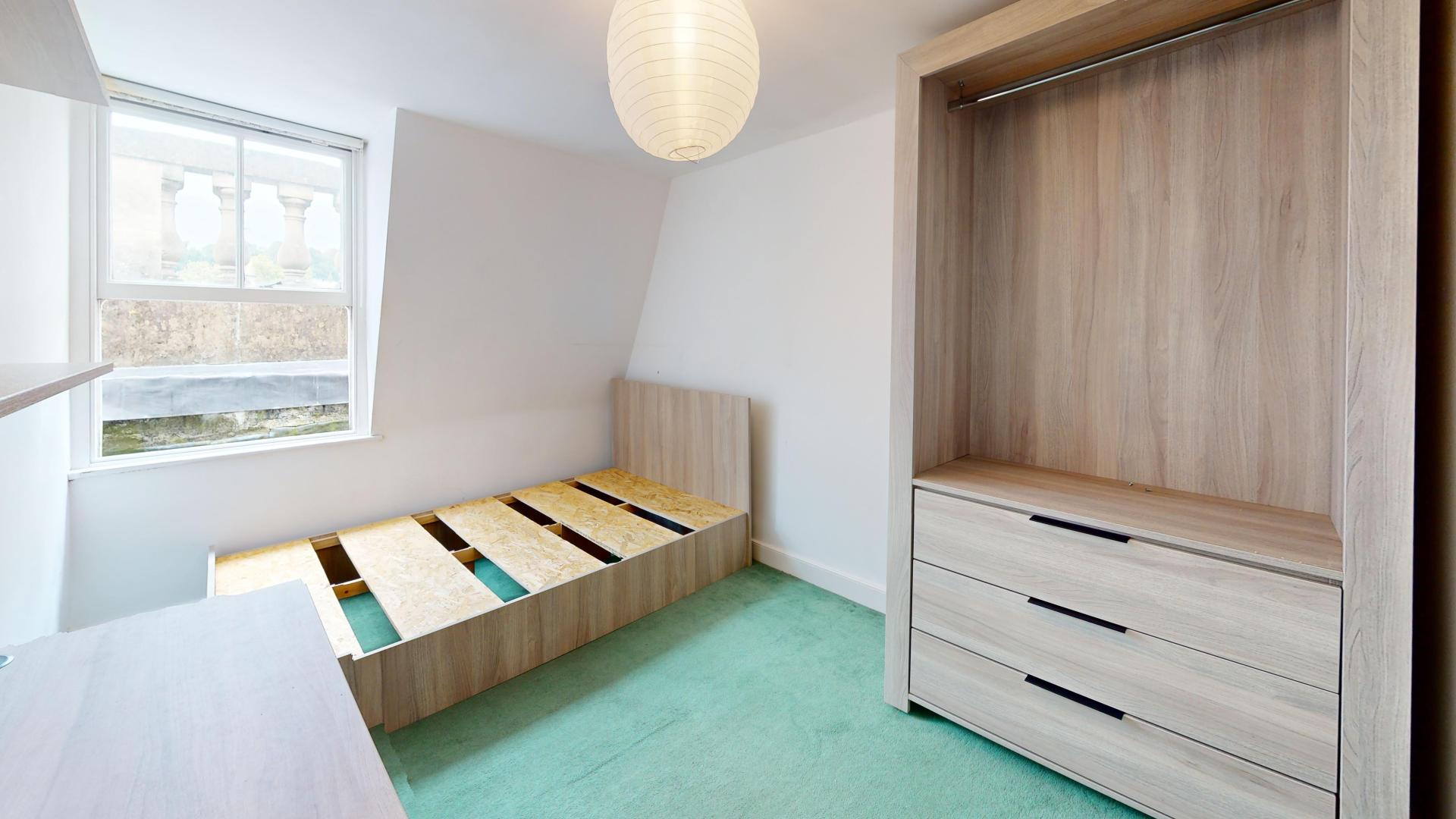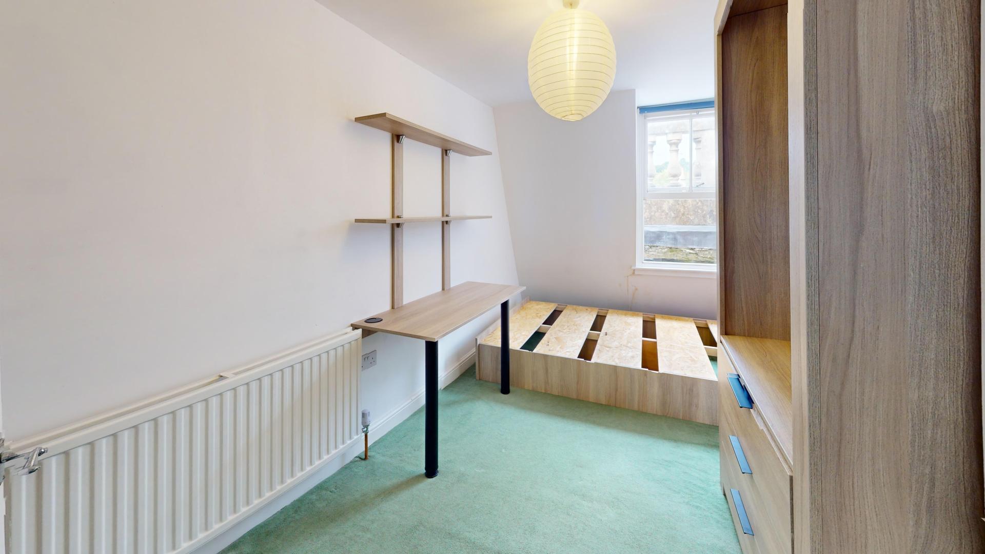 - Bedroom furniture: bed, desk, desk chair, wardrobe, and drawers