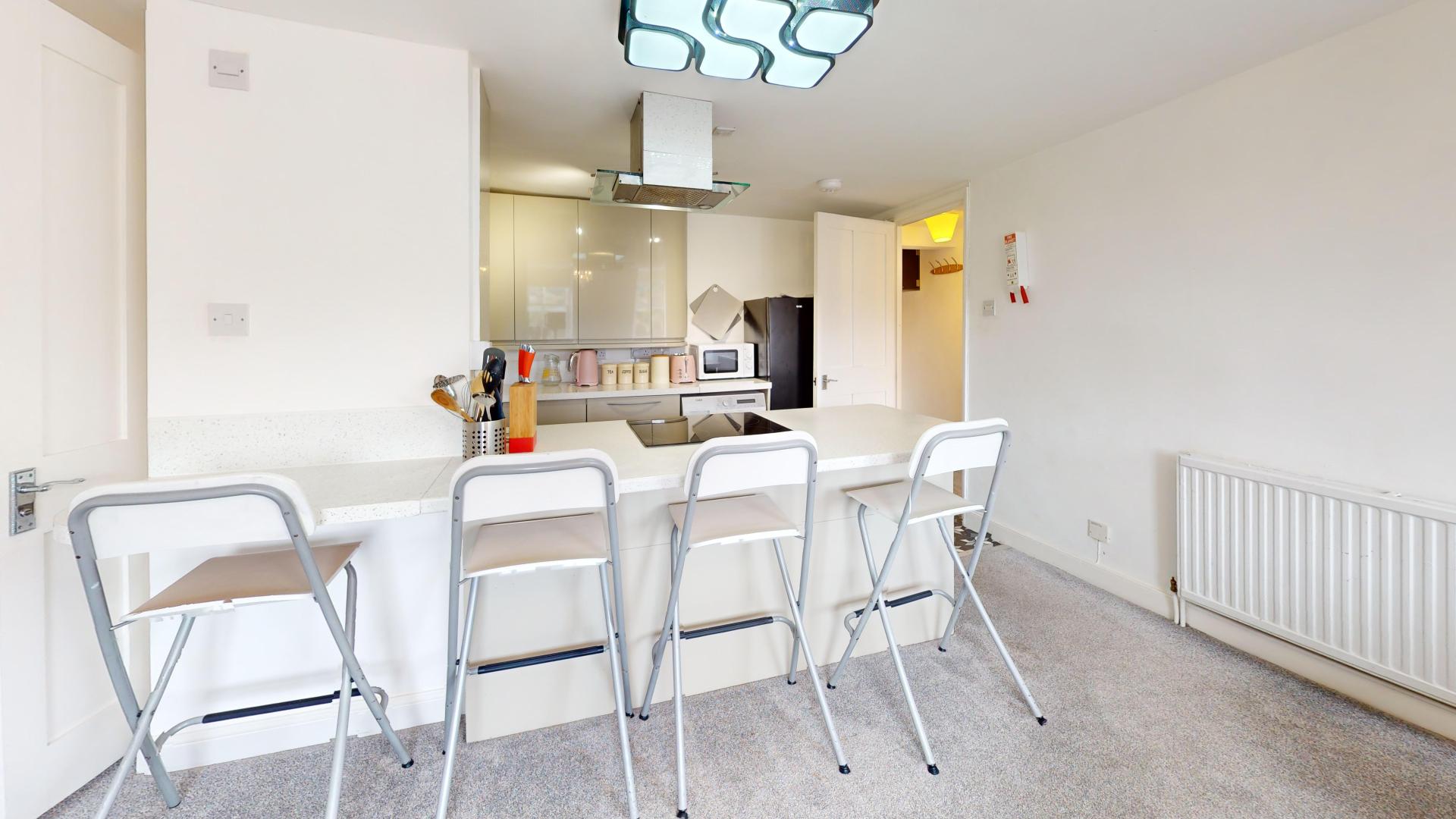 4 Double Bedrooms – Each bedroom is generously sized and fully furnished with a double bed, wardrobe, desk, and chair – offering the perfect space for rest and WFH settings. One of the rooms also benefits from a private en-suite bathroom for added comfort and convenience.
