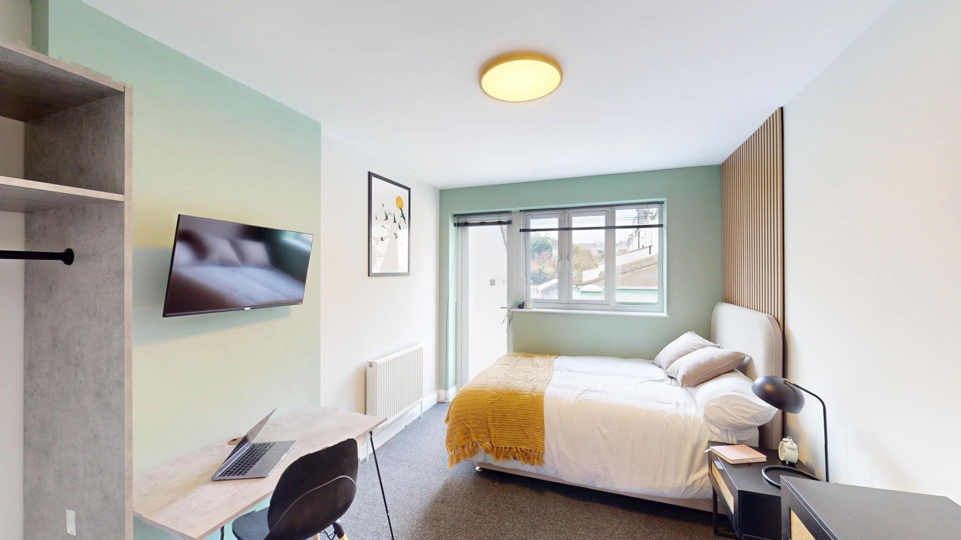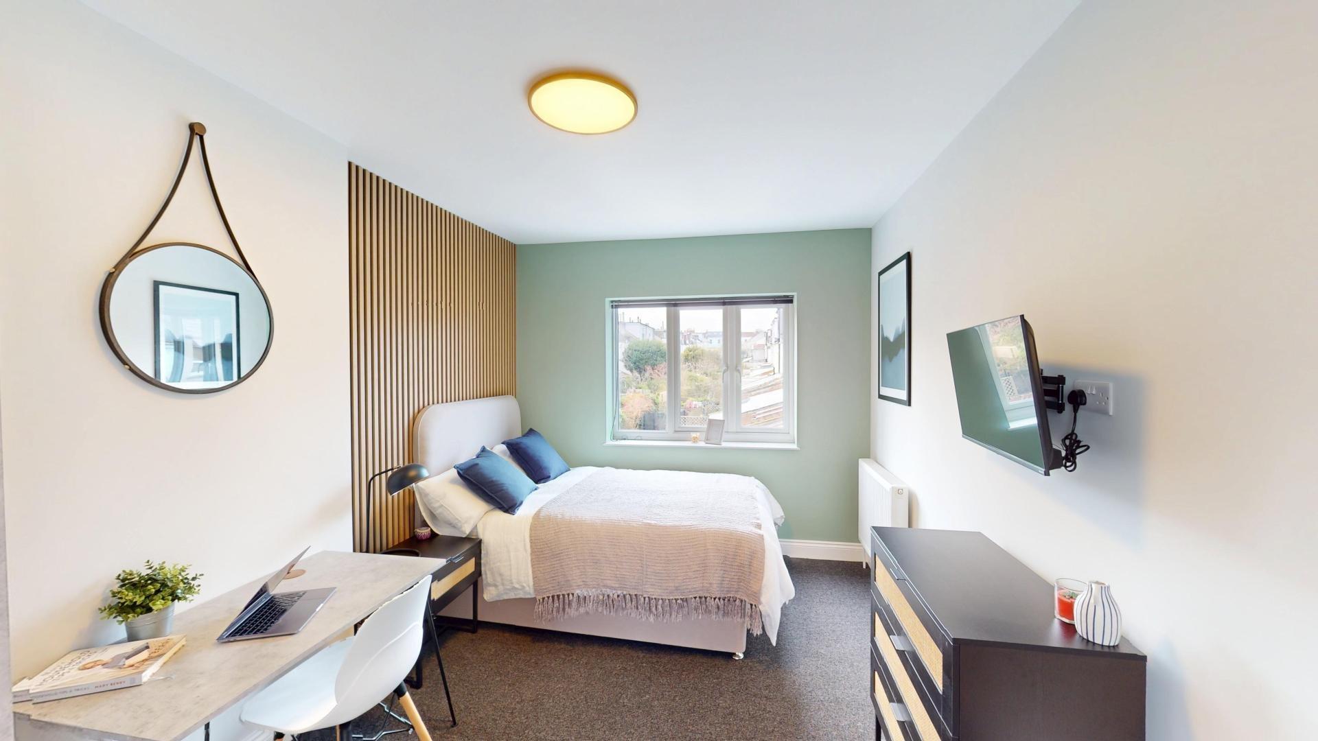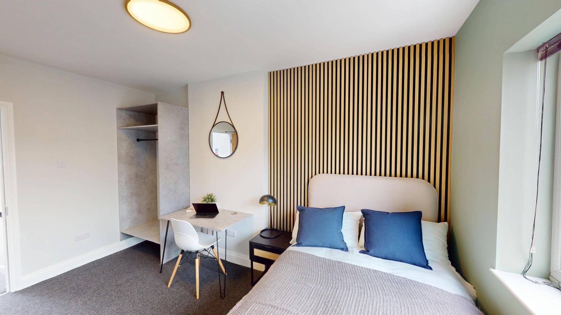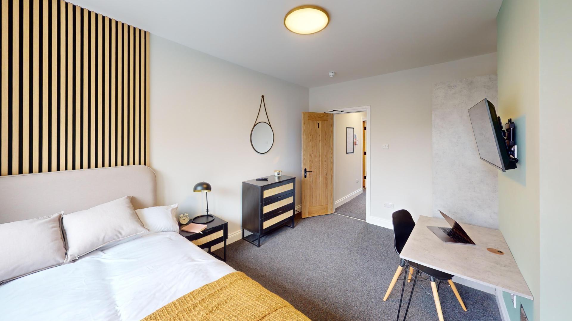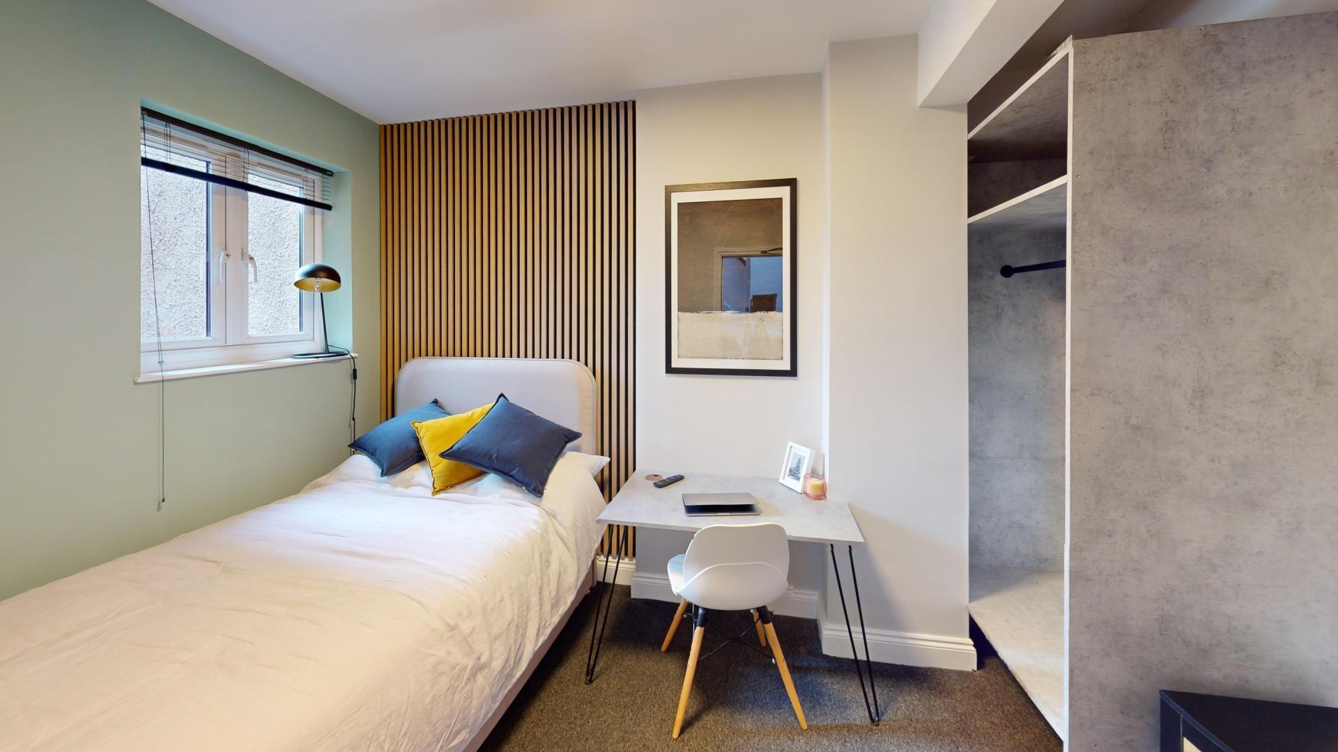 - Bedroom furniture: bed, desk, desk chair, wardrobe, and drawers