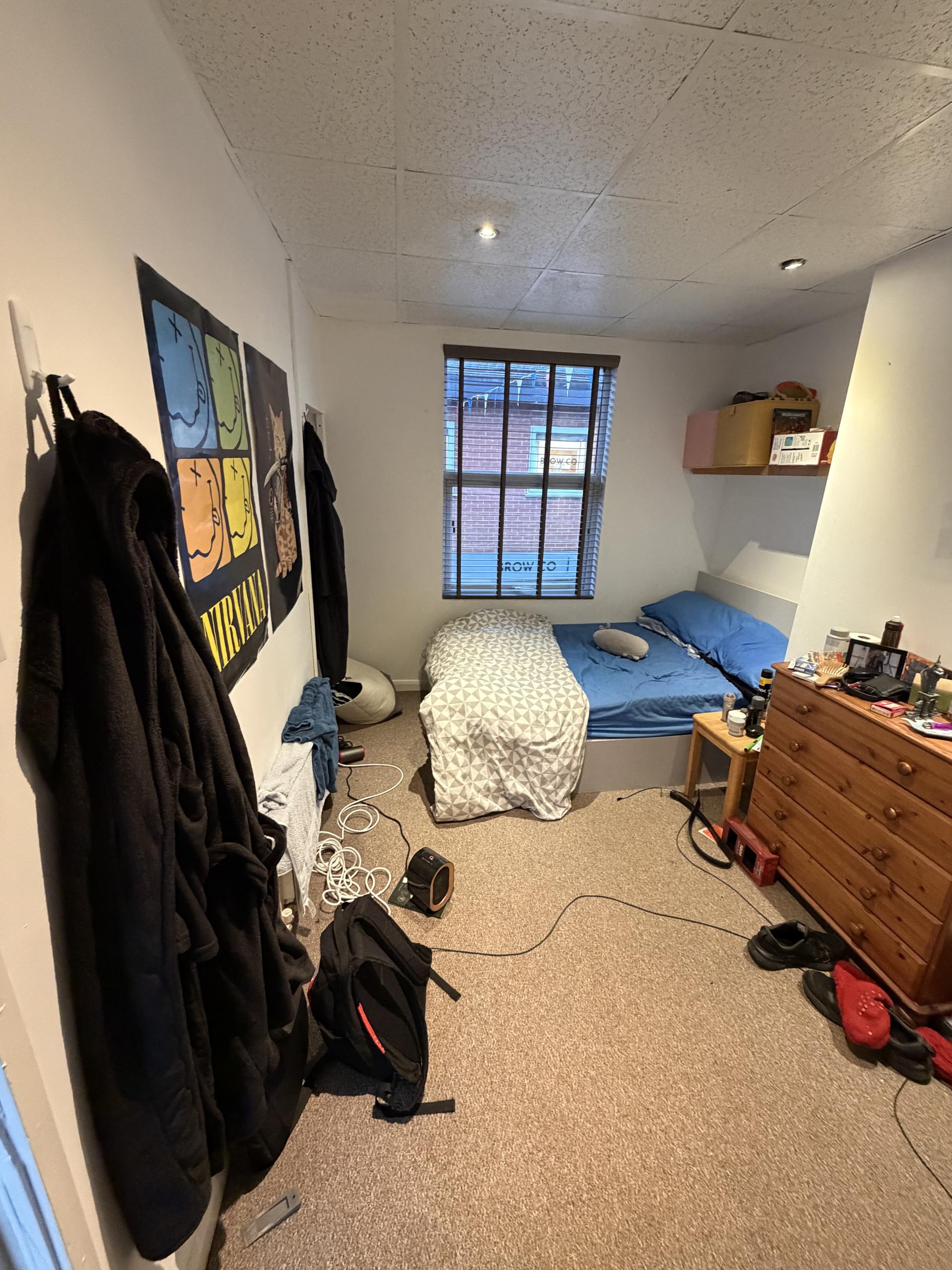 - Bedroom furniture: bed, desk, desk chair, wardrobe, and drawers