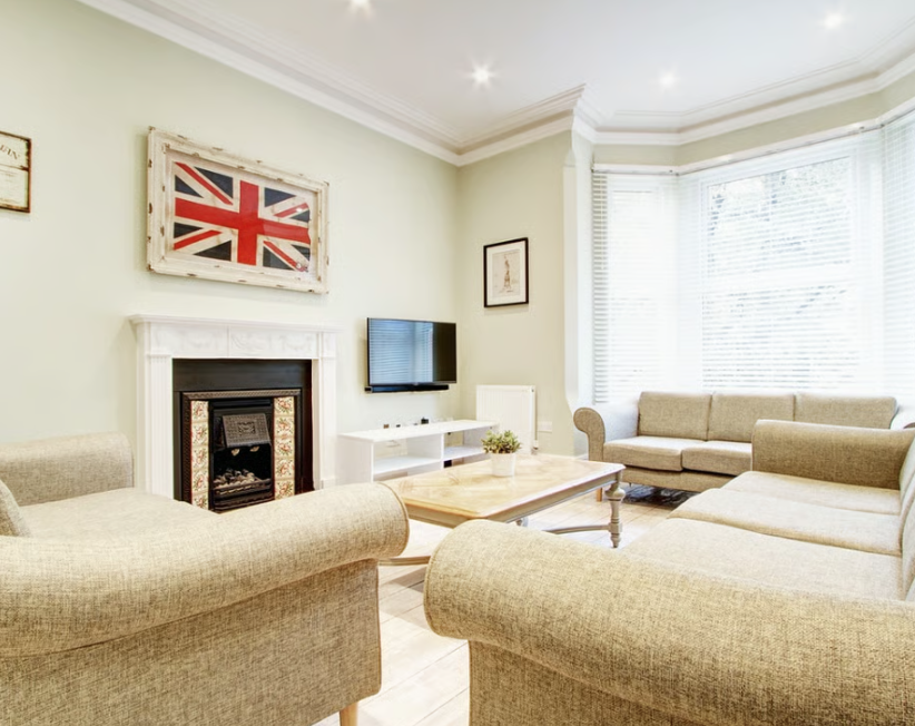 - Spacious communal living: large lounge area with three big sofas and a huge flat-screen TV - ideal for socialising and relaxing together