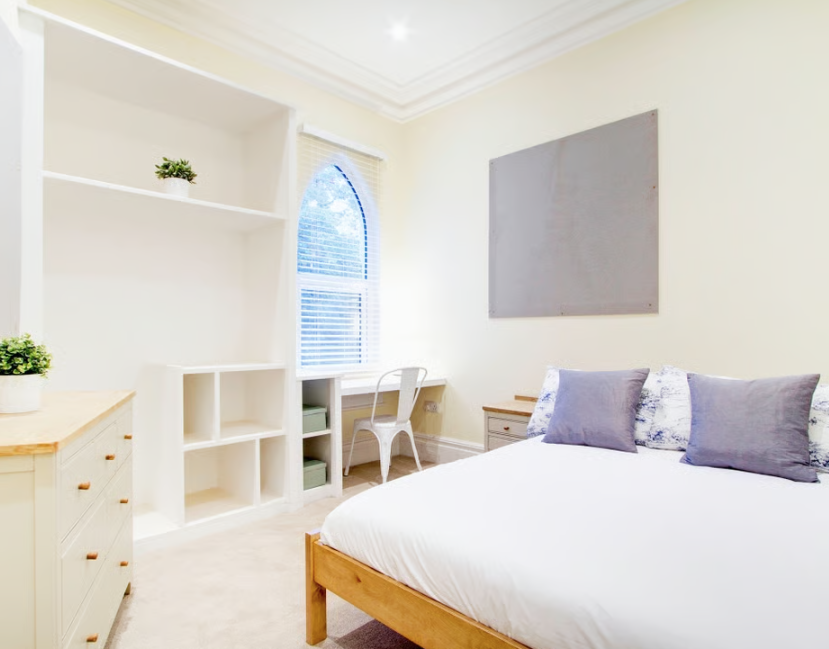 - Bedroom furniture: bed, desk, desk chair, wardrobe, and drawers