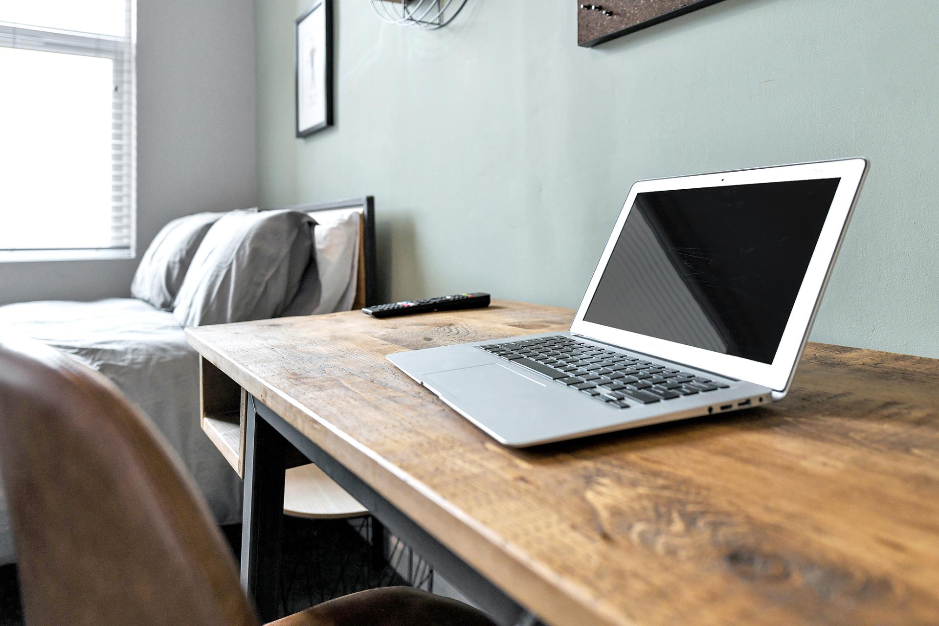 - Bedroom furniture: bed, desk, desk chair, wardrobe, and drawers