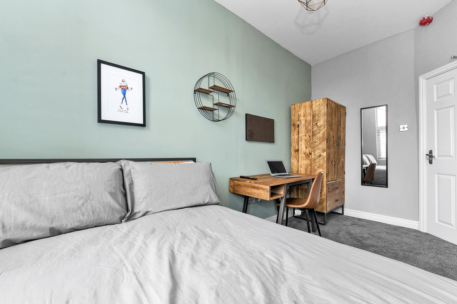 - Twelve recently refurbished double bedrooms for the 24/25 academic year located over four floors, complete with recently fitted carpets, light fittings to ceiling, and blinds to windows. Each bedroom also benefits from a 32inch Smart TV, double bedframe, mattress, large study desk, desk chair and large wardrobe with in-built drawers.