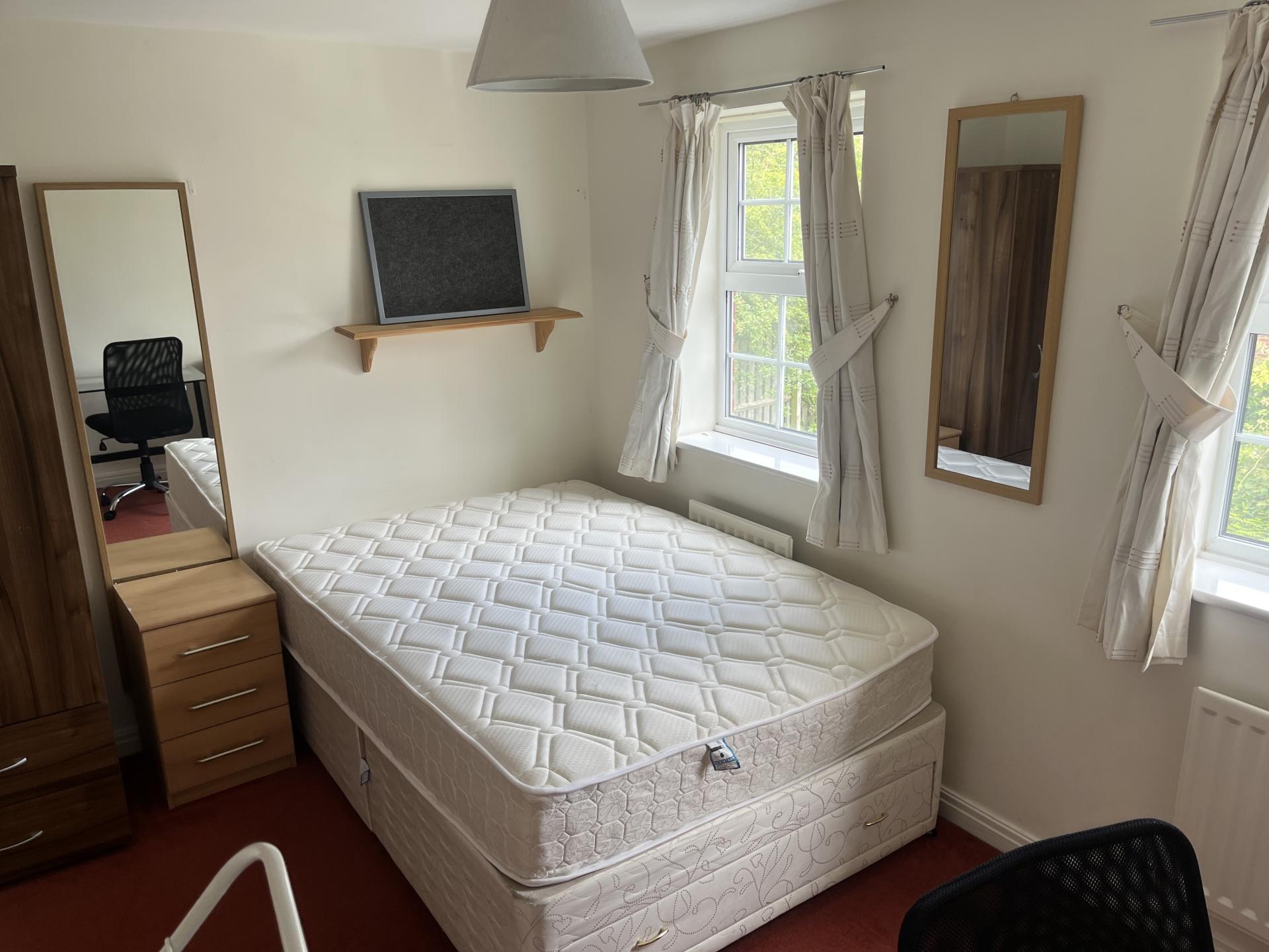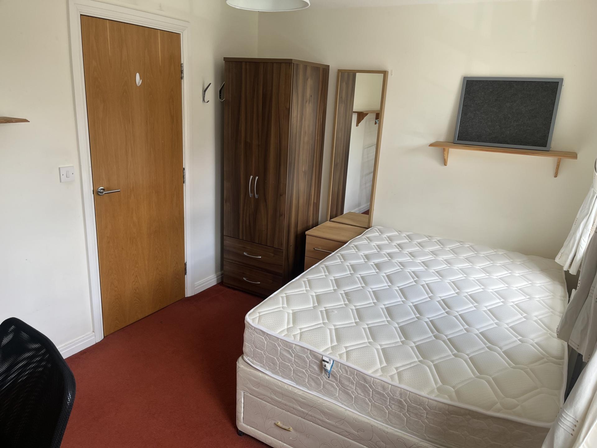- Bedroom furniture: bed, desk, desk chair, wardrobe, and drawers